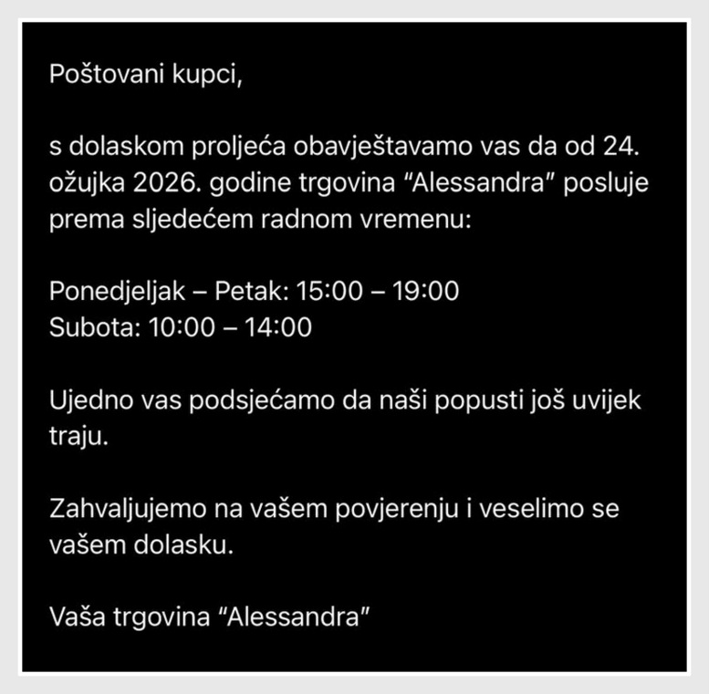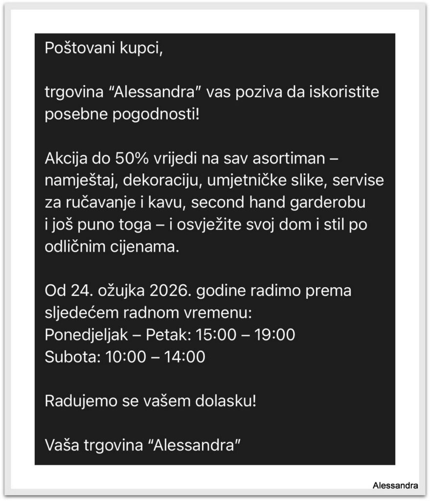 Od sada u Trgovini “ALESSANDRA” možete pronaći i pomno odrabranu second hand garderobu !