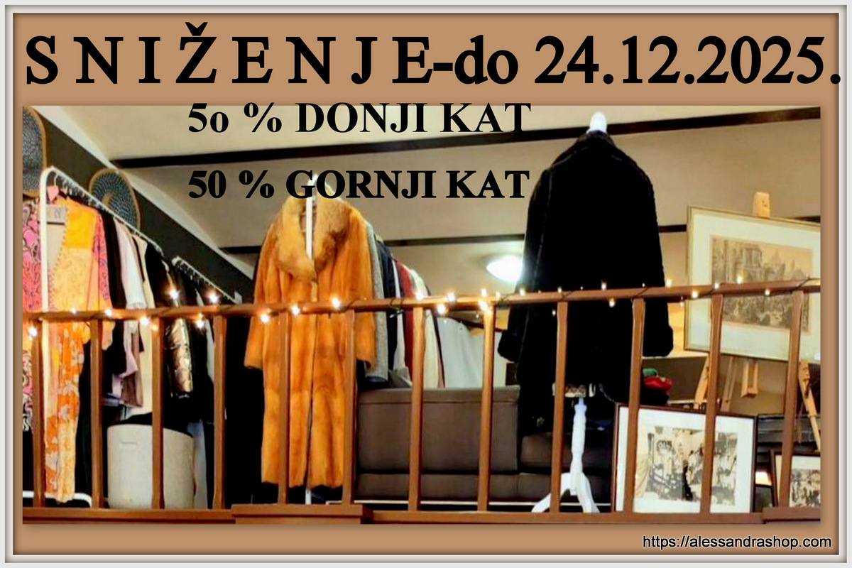 "Alessandra" TRGOVINA “ALESSANDRA”-SLAVONSKI BROD. "ALESSANDRA"30. studenoga 2025.30. studenoga 2025. SNIŽENJE-DO 24.12.2025 GODINA… GORNJI KAT 50% DONJI KAT 50 %